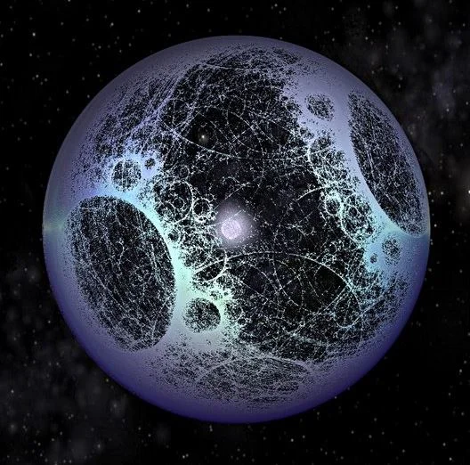 One has to ask however, whether such an advanced civilisation with escalating energy needs would instead choose to occupy other star systems by interstellar diffusion, rather than huddling around the light of one lone object? More credible versions of this idea known as a Dyson Swarm consists of many large number of independent constructions orbiting in a dense formation around a star. Another variant is a Ring World, a hypothetical orbiting structure around a star, but rather than a complete sphere, it is instead a ring. The idea was popularised in a 1970 science fiction novel by Larry Niven[6].