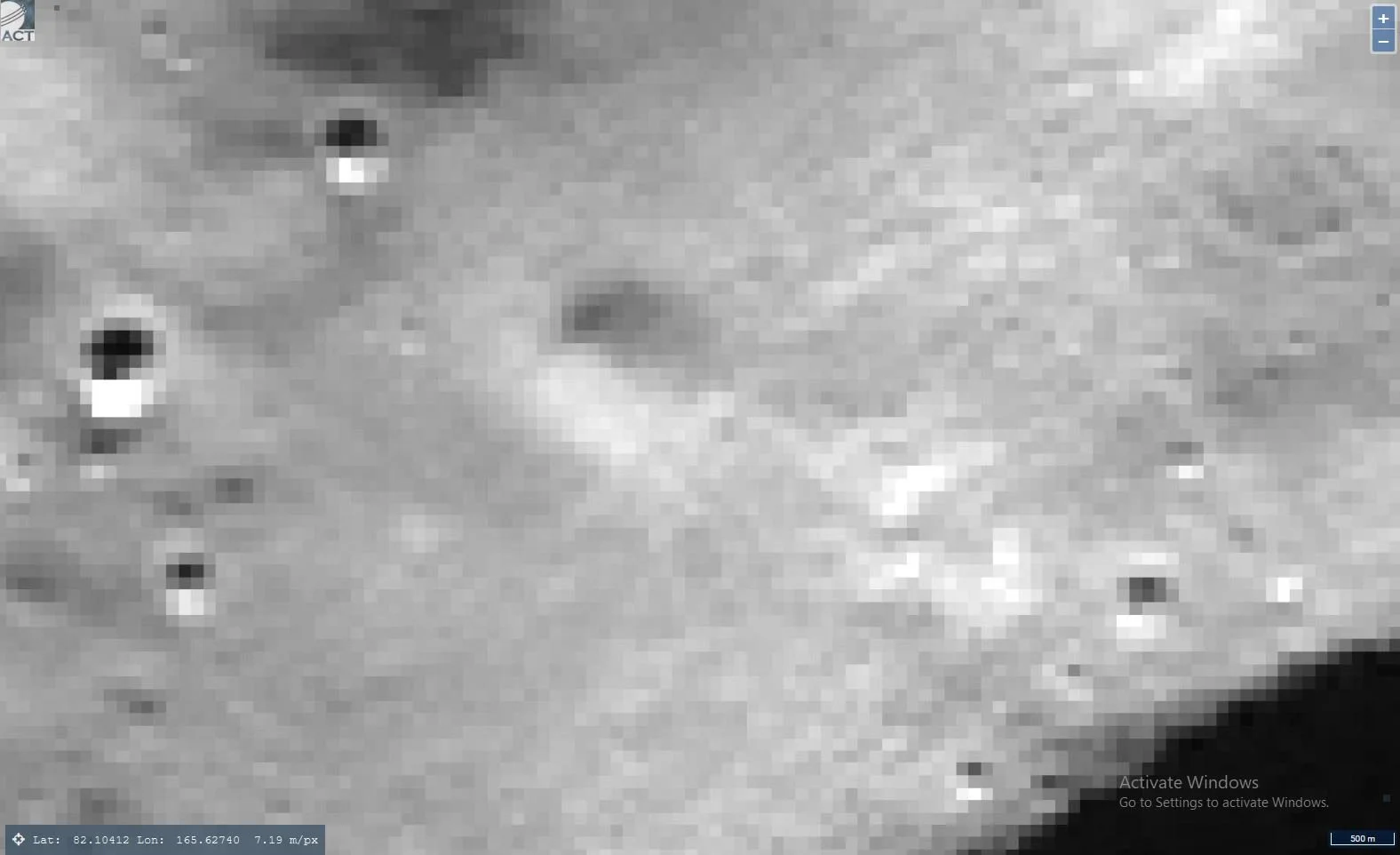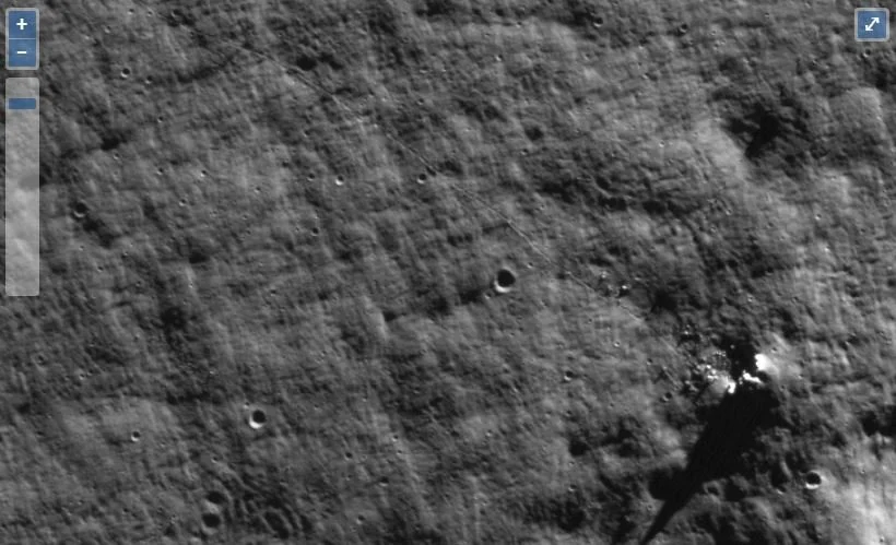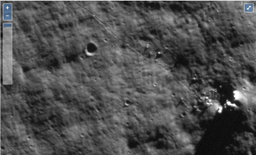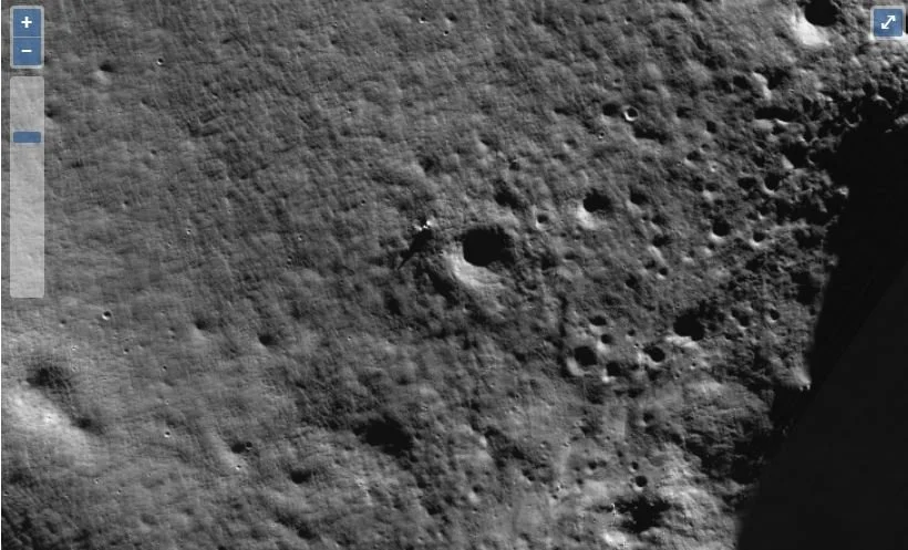 None of the features seen in 2018 are now available. To double check, I recently went back to the NASA LRO web site and screen grabbed the same location. These were grabbed on 21st November 2024. Again, there is still significant blurring. It is no longer possible to zoom in and examine the features as I did in 2018. Something seems to have happened to the images that prevents any further zooming towards higher fidelity resolution so that smaller objects in this location can be examined.