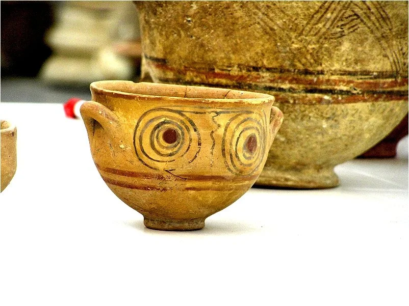 An aspect of the Minoan culture that is interesting is their ceramics, with beautiful patterns of triangles and spirals. The artefact below is one such example that this author stumbled across known as Philistine Bichrome Pottery and there are suggestions this type of design may have had connection to the Minoan culture, and also the Mycenaean. This particular piece was believed to have been manufactured in ancient Canaan, a region of the Southern Levant in the Ancient Near East which encompasses Egypt, Iran, Anatolia, Armenia, the Levant and the Arabian Peninsula. This piece, possibly dates to around the 12 Century BCE.